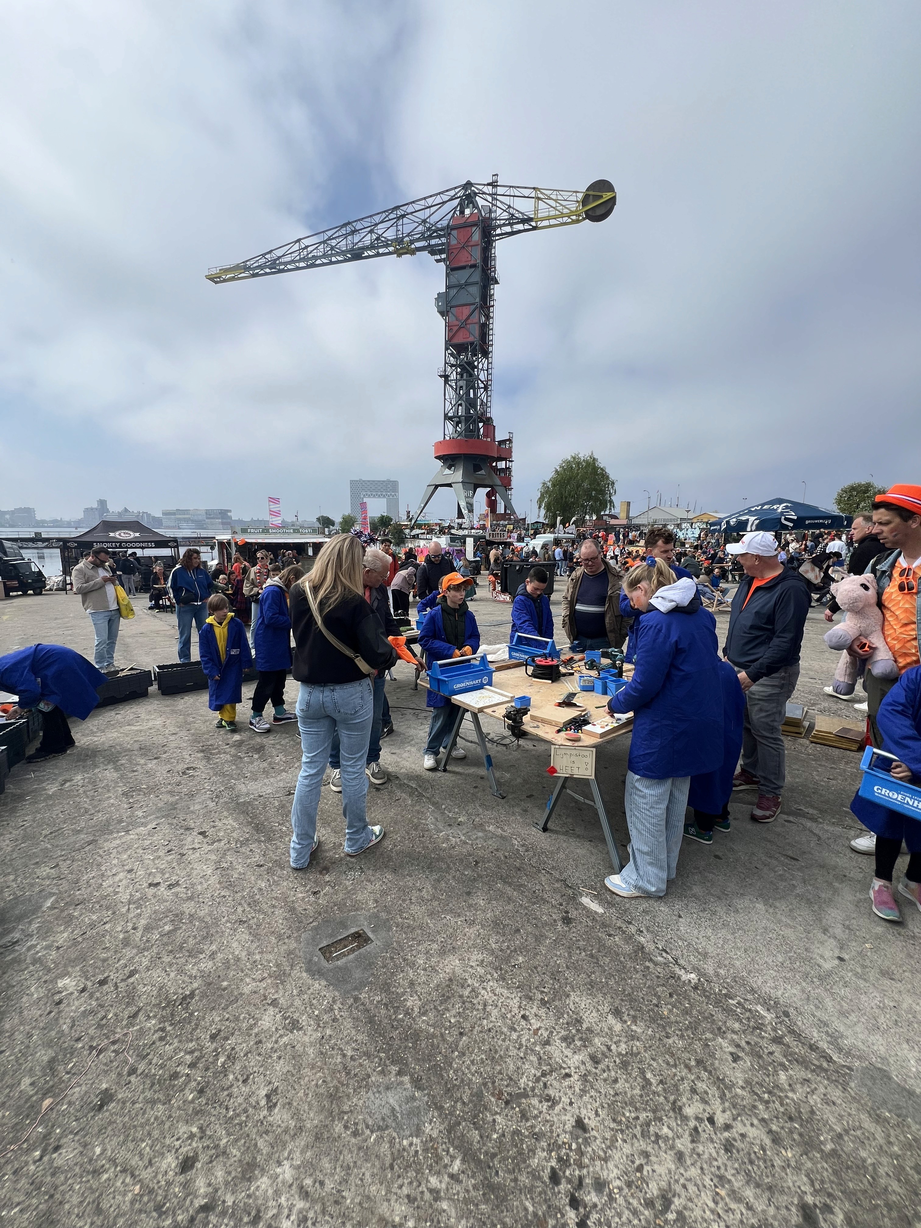 Ja, juist. Kinderen werken in kleine groepjes met een eigen werkplek, dus de drukte om hen heen trekt ze nauwelijks af. Voor de doorstroom gebruiken we een jasjes-systeem: 12 jassen beschikbaar, jas aan = je bent aan de beurt, jas in = volgende mag. Werkt soepel, ook bij grote evenementen.
