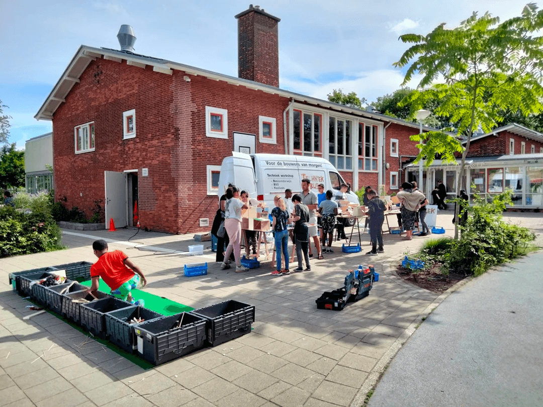 De Techniekbus is in 2020 opgericht door Bram, creatief vakman en meubelmaker. Zijn missie: kinderen laten ontdekken dat techniek leuk is, door het gewoon zelf te doen. Met een bus vol gereedschap en restmateriaal van bedrijven rond Amsterdam geven we workshops waarbij geen enkel plankje hetzelfde is, maar de creaties altijd fantastisch zijn. Na meer dan 200 workshops weten we één ding zeker: kinderen leren het beste door zelf te bouwen.